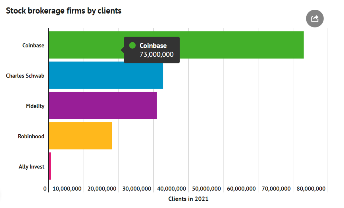 这种可访问性大大扩展了平台的总潜在市场,交易用户从通常年龄较大、较富有的个人(至少有一些投资知识)转向更年轻、经验较少、更穷的人。例如,罗宾汉的平均客户是 31 岁,而 Charles Schwab 的平均客户是 50 岁左右。绝大多数 20 多岁的年轻人有了第一次上车交易证券的机会。