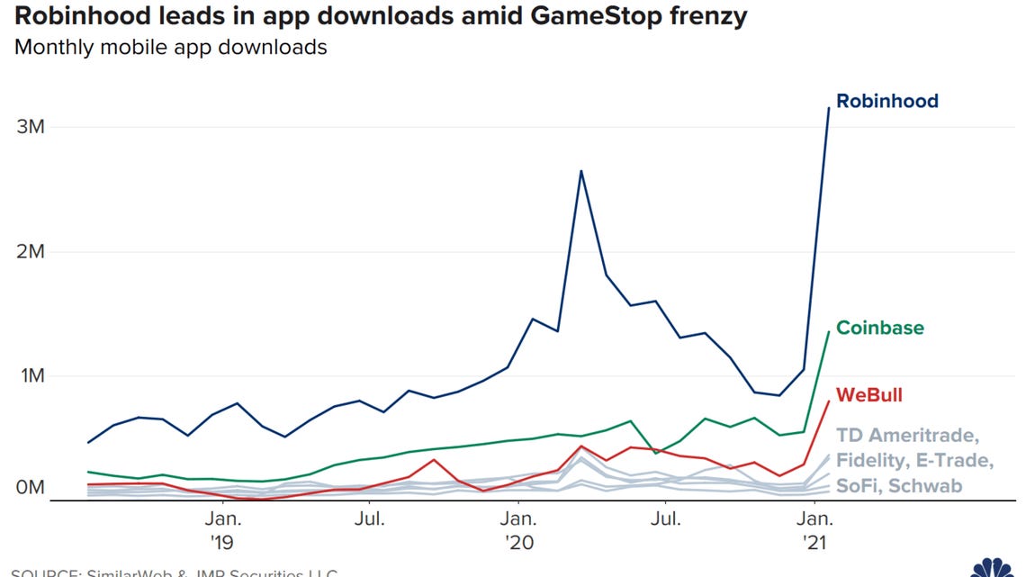 21 年 1 月当月,罗宾汉新开户数超过了其他所有机构的总和。