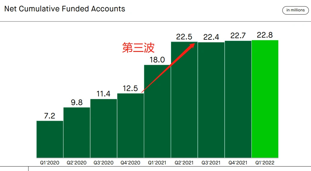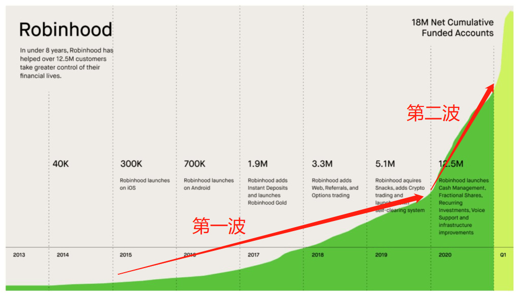 散户平台:罗宾汉用户年龄在 30 岁上下,喜欢游戏,平均账户中位数 240 美金,平均 5000 美金(同业在7万美元以上),获客成本 12 美金(同业在 170 美元以上)。